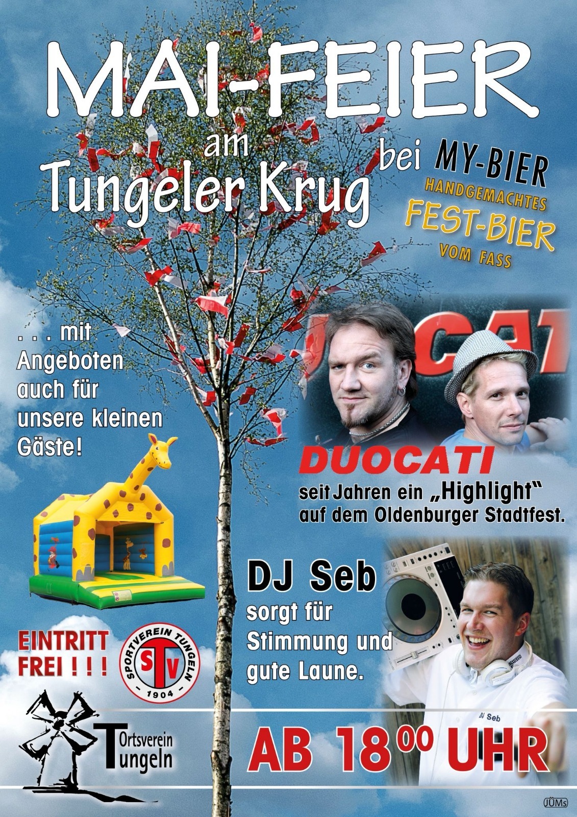 Am 30.04. findet die Feier am Tungeler Krug statt. Um 18 Uhr geht's los! WIR freuen uns auf Euch!